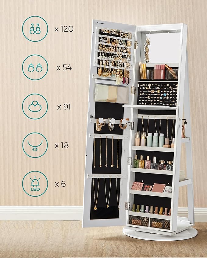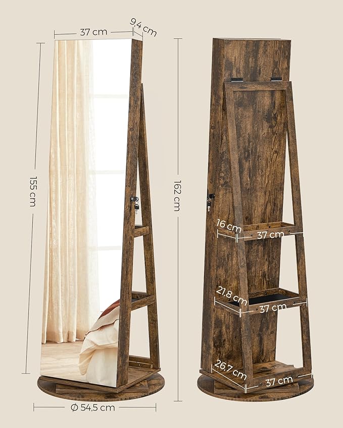 - ESPEJO SIN MARCO, MÁS BONITO Este espejo joyero viene con un espejo de cuerpo entero sin marco de 37 x 155 cm que es fácil de ver y te da un reflejo de la cabeza a los pies, lo que hace que tus comprobaciones diarias de la ropa sean más agradables